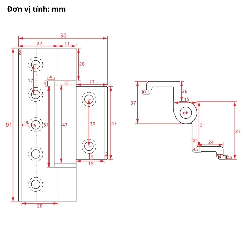 - Cấu tạo: Bản lề hợp kim + trục thép