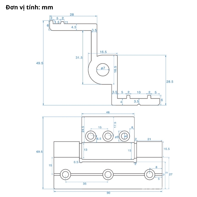 Đặc điểm của Bản lề cửa sổ cửa đi nhôm trục rời KD7939