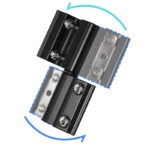 Bản lề sử dụng hợp kim nhôm cao cấp, bề mặt xử lý sơn tĩnh điện chống oxy hóa, hạn chế han gỉ, phù hợp lắp đặt cả trong nhà lẫn khu vực có độ ẩm cao. Cấu trúc bản lề tháo rời giúp việc thi công, bảo trì và thay thế cửa trở nên nhanh chóng, tiết kiệm thời gian và công sức.