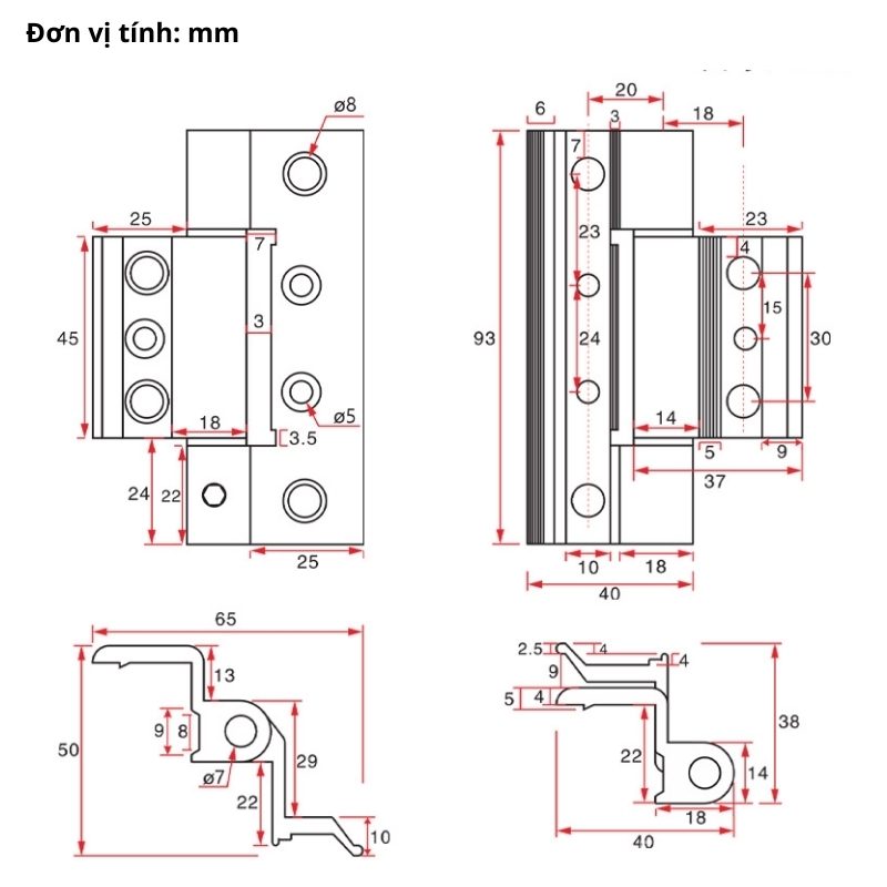 - Kết cấu chắc chắn – lắp đặt ổn định: Thiết kế lỗ bắt vít khoa học, lực phân bổ đều, giúp bản lề bám chắc vào cánh và khung cửa, tăng độ an toàn khi sử dụng.