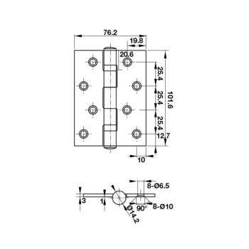 Thông tin của Bản lề lá 2 vòng bi 70Kg Hafele 926.20.11