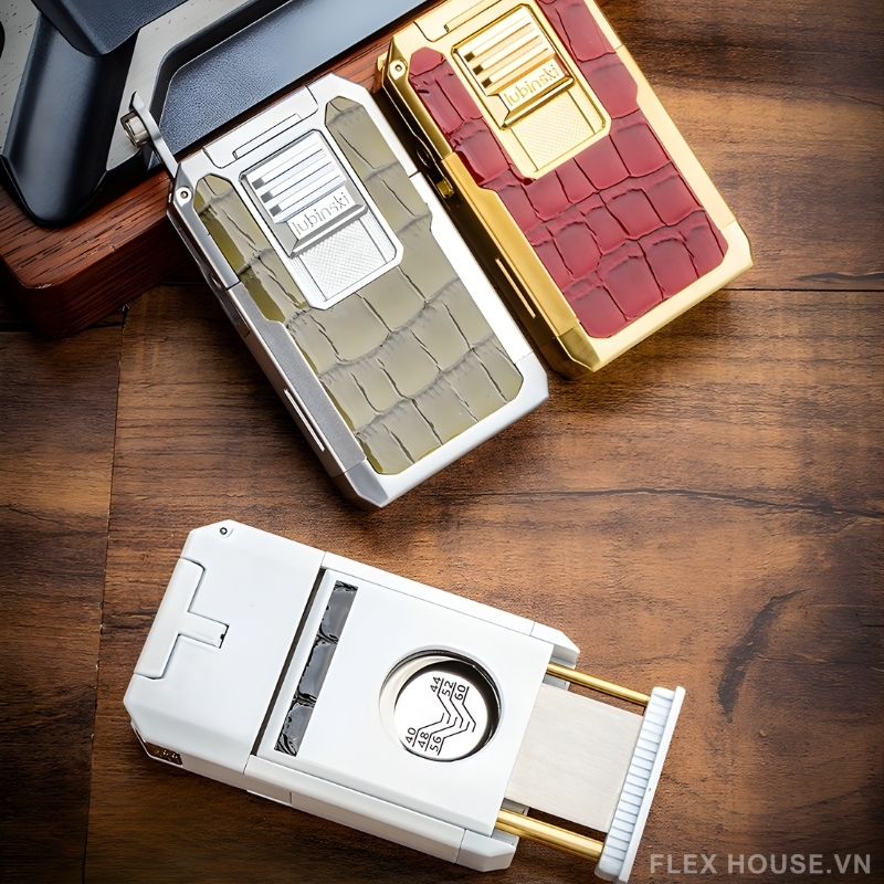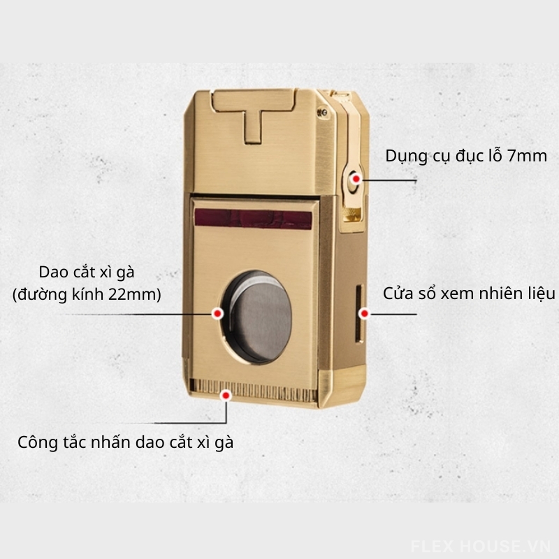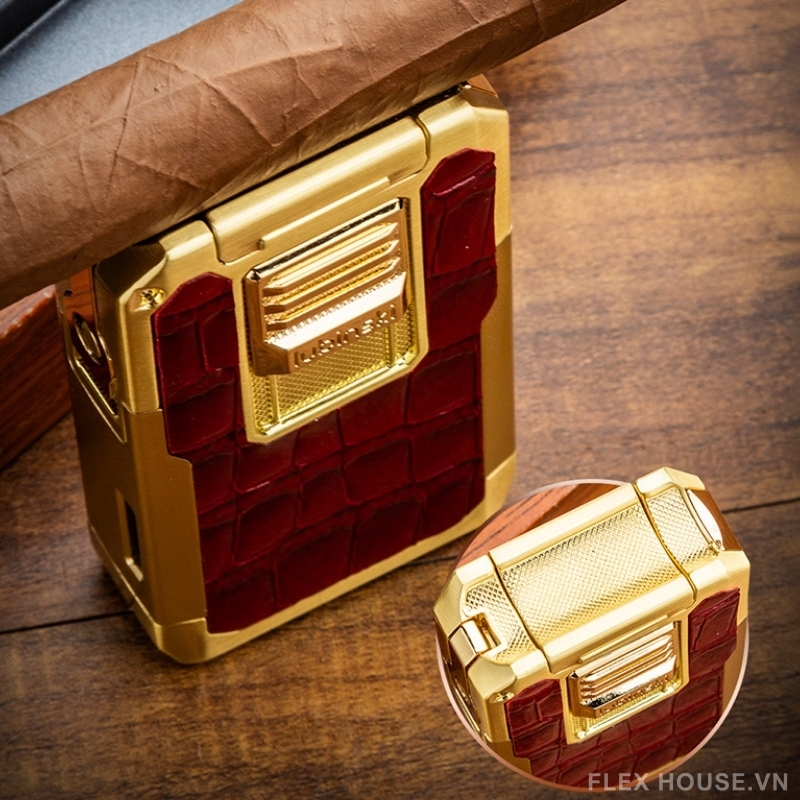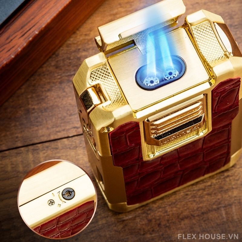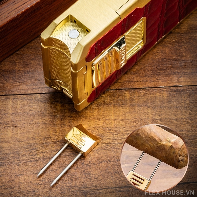 - Bật lửa hai tia xanh (dual jet flame): Ngọn lửa mạnh, tập trung, chống gió hiệu quả, dễ dàng mồi cigar ngoài trời