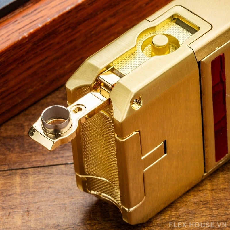 - Chất liệu cao cấp: Thân bật lửa bằng hợp kim kẽm kết hợp da bò thật, bề mặt hoàn thiện tinh xảo, độ bền cao