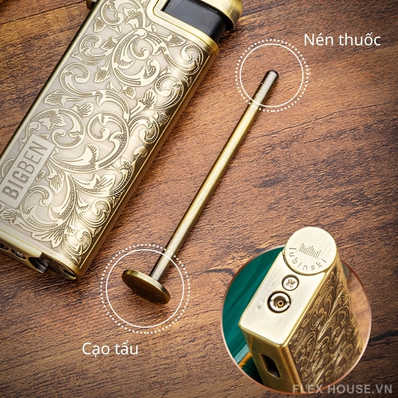 Bật lửa cigar khắc nổi tinh xảo cổ điển LBS2075 là lựa chọn dành cho những quý ông yêu thích phong cách cổ điển, sang trọng và đề cao trải nghiệm thưởng thức xì gà trọn vẹn. Thiết kế thân bật lửa bằng hợp kim kẽm cao cấp, bề mặt khắc hoa văn cổ điển sắc nét, mang lại cảm giác chắc tay và giá trị thẩm mỹ cao ngay từ ánh nhìn đầu tiên.
