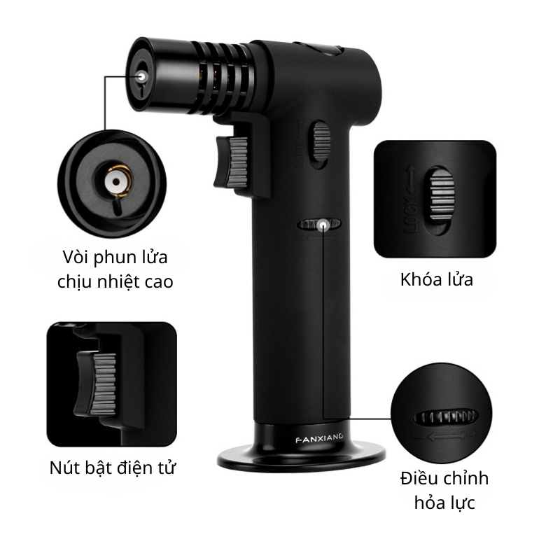 - Ứng dụng công nghệ phun lửa áp suất cao giúp tạo ngọn lửa mạnh, ổn định và ít bị ảnh hưởng bởi gió, giúp châm cigar nhanh và đều