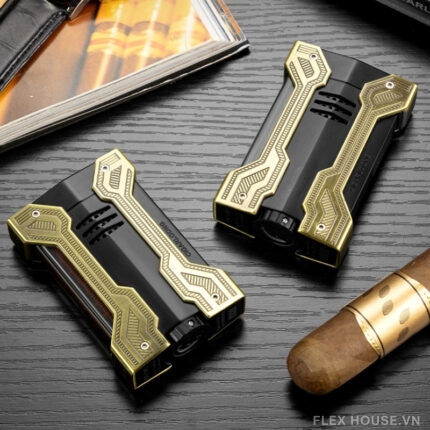Bật lửa được chế tác từ kim loại cao cấp với bề mặt hoàn thiện tinh xảo, mang lại cảm giác chắc tay khi sử dụng. Hệ thống khò 2 tia mạnh mẽ giúp tạo ngọn lửa ổn định, đảm bảo cigar được châm đều và nhanh chóng.