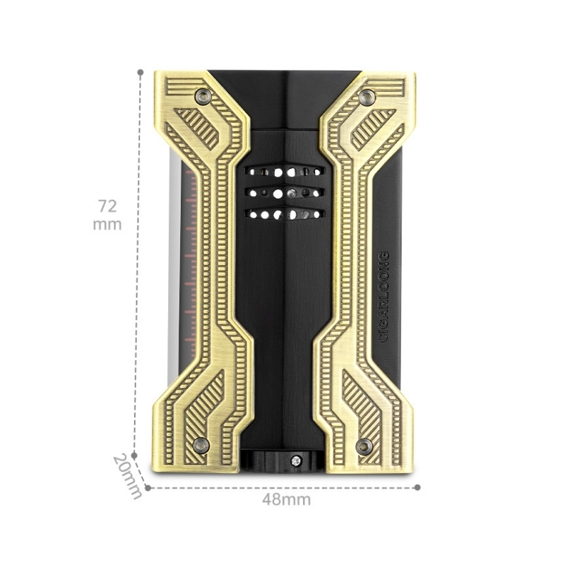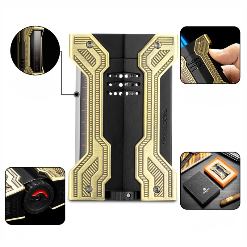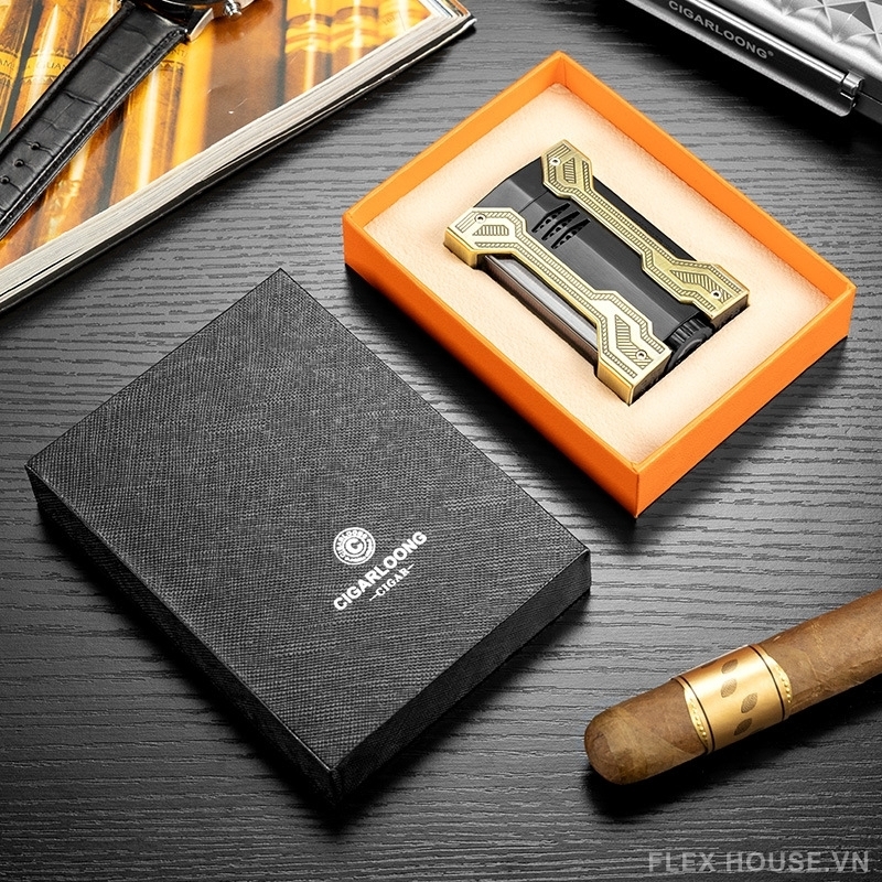 Bật lửa được chế tác từ kim loại cao cấp với bề mặt hoàn thiện tinh xảo, mang lại cảm giác chắc tay khi sử dụng. Hệ thống khò 2 tia mạnh mẽ giúp tạo ngọn lửa ổn định, đảm bảo cigar được châm đều và nhanh chóng.