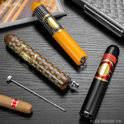 Bật lửa xì gà 3 tia đục kèm kim thông ẩn CGL5799 là phụ kiện đa năng dành cho người chơi cigar hiện đại, tích hợp 3 chức năng trong một thiết kế nhỏ gọn: khò lửa mạnh, đục lỗ cigar và kim thông tiện lợi. Với kiểu dáng sang trọng cùng lớp sơn hoàn thiện cao cấp, sản phẩm không chỉ là công cụ mà còn là món phụ kiện thể hiện phong cách cá nhân.