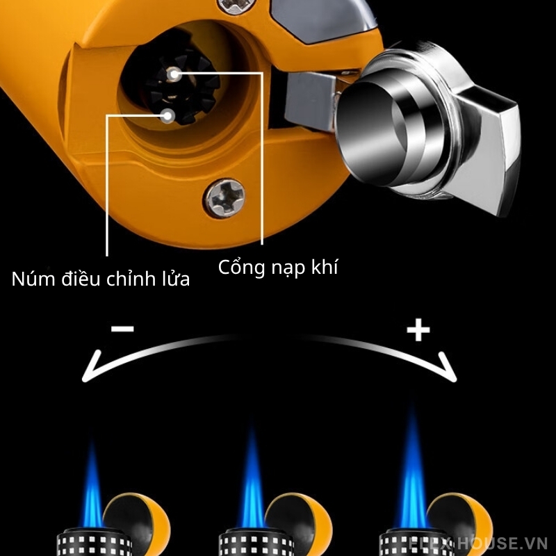 - Chỉnh lửa linh hoạt: điều chỉnh độ mạnh yếu phù hợp từng loại cigar