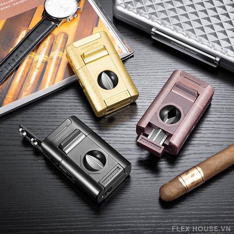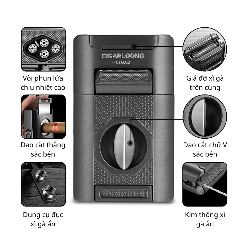 - Tính năng: 4 tia lửa, dao cắt chữ V, kim chọc, gác xì gà
