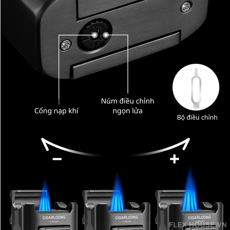 Đặc điểm của Bật lửa xì gà bốn tia chống gió kèm dao cắt CGL0007