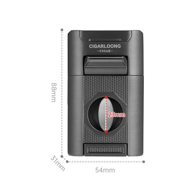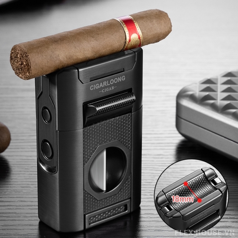 - Thiết kế đa năng 4 trong 1: tích hợp bật lửa khò, dao cắt chữ V, kim chọc xì gà và gác xì gà