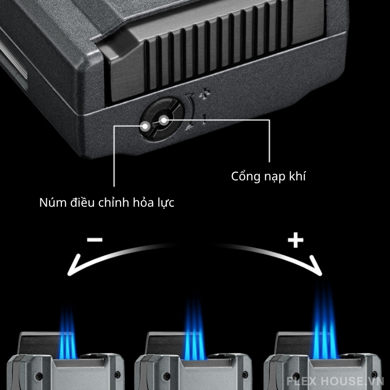 - Hệ thống 3 tia lửa mạnh mẽ: ngọn lửa xanh tập trung, đốt nhanh, chống gió hiệu quả