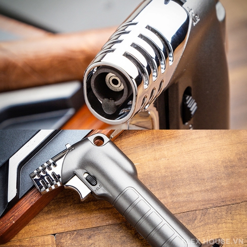 - Ngọn lửa mạnh mẽ tập trung giúp đốt cigar nhanh, đều và hiệu quả trong nhiều điều kiện