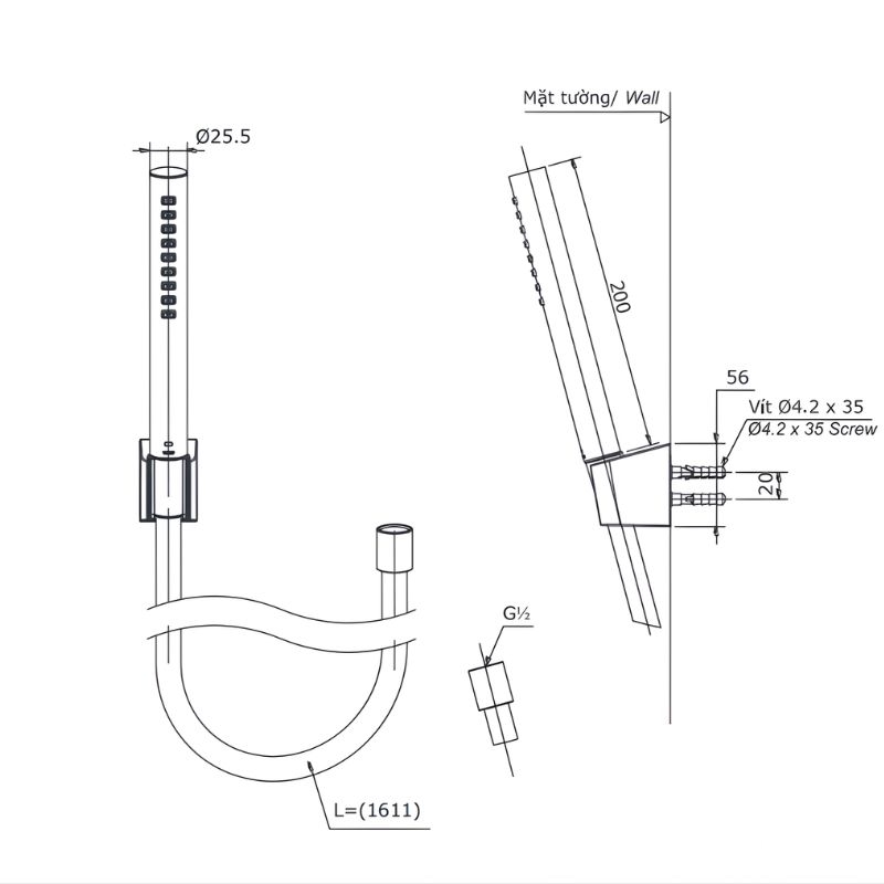 - Áp lực nước: 0.05 ~ 1.0 MPa