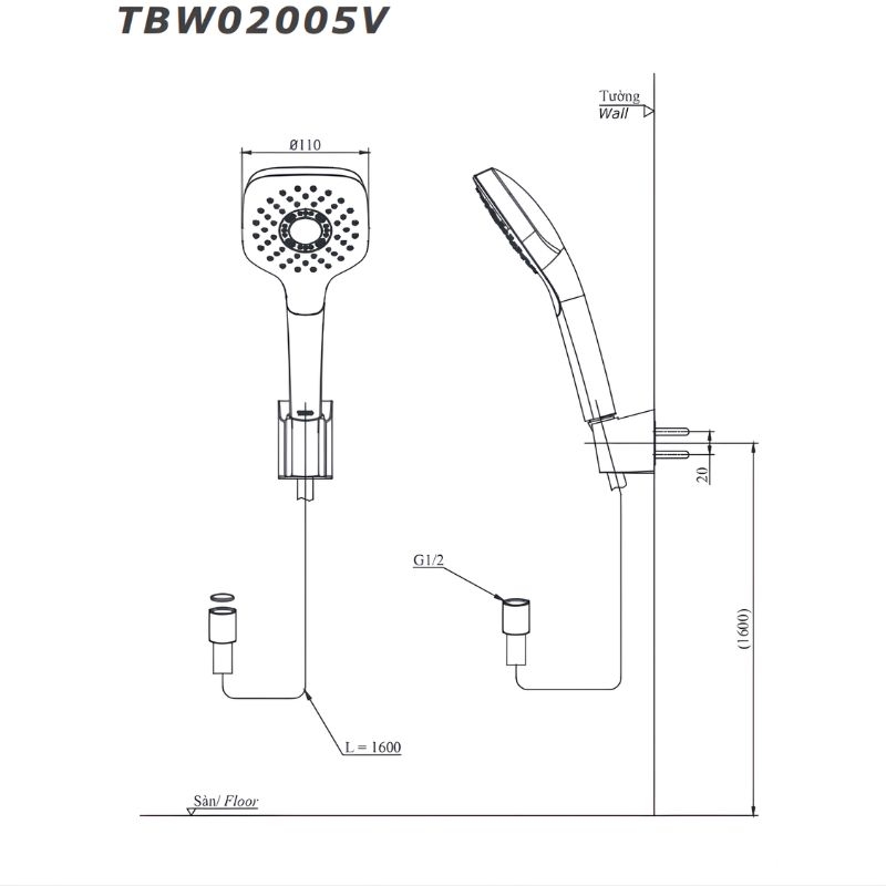 Tay sen tắm TBW02005V sở hữu thiết kế dáng vuông hiện đại, đường kính 110 mm, phù hợp với nhiều không gian phòng tắm từ căn hộ đến khách sạn. Sản phẩm được làm từ nhựa mạ Niken–Crom cao cấp, bề mặt sáng bóng, bền màu và hạn chế bong tróc trong quá trình sử dụng. Tay sen hoạt động ổn định trong dải áp lực nước 0.05 – 0.75 MPa, đi kèm gác sen tiện lợi, dễ lắp đặt và sử dụng hằng ngày. Đặc biệt, tay sen được ứng dụng công nghệ mát-xa Comfort Wave tạo tia nước mạnh mẽ, nhịp nhàng và đều.