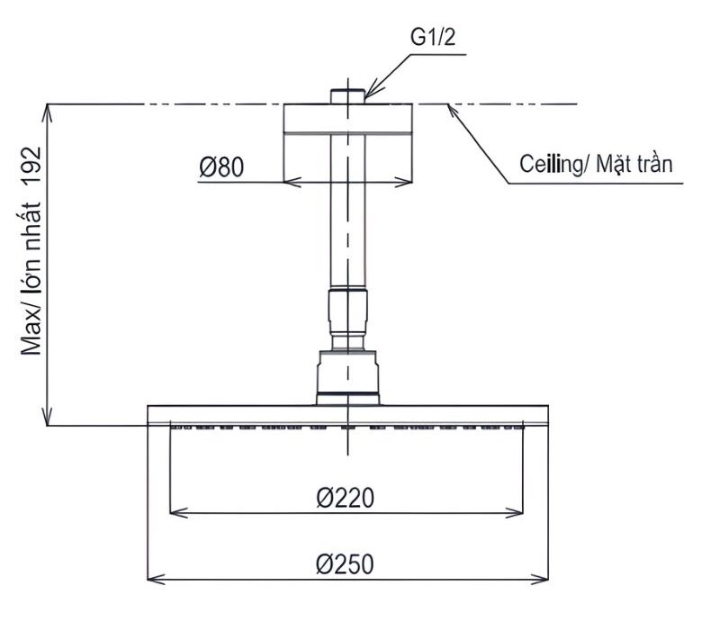 - Loại: Bát sen gắn trần 1 chế độ massage