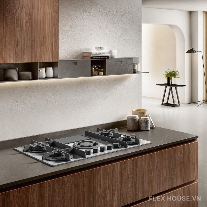 Bếp gas kết hợp hút mùi Elica NikolaTesla Flame trang bị 4 vùng nấu linh hoạt, chân kiềng gang vững chắc và bộ lọc dầu mỡ, than hoạt tính dễ tháo rời – có thể vệ sinh bằng máy rửa chén, giúp duy trì hiệu suất và độ bền tối đa.