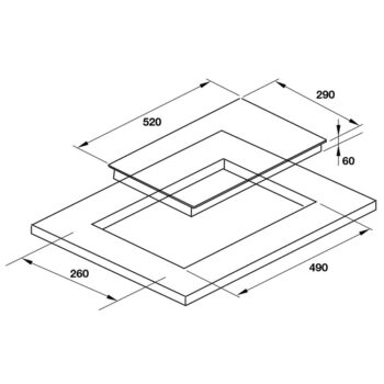 - Kích thước mặt kính : R290 x S520 x C60mm