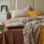Bộ chăn ga gối họa tiết Jacquard cao cấp MM9528A được làm từ vải cotton thoáng khí nhuộm sợi, khô hơn và thoáng khí hơn so với cotton thông thường, tránh các vấn đề nhạy cảm do độ ẩm gây ra, phù hợp với làn da nhạy cảm và mỏng manh. Công nghệ jacquard ba lớp làm cho mẫu có cảm giác ba chiều và phân lớp tốt hơn.