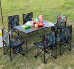 Bộ bàn ghế xếp dã ngoại tiệc ngoài trời YZ5922 sản xuất từ hợp kim nhôm siêu nhẹ cùng thiết kế gấp gọn tiện lợi, mặt bàn kích thước lớn cấu tạo từ những thanh nhôm dẹt với kết cấu cuộn thông minh. Các khớp nối và chân đế của bàn, ghế sử dụng nhựa ABS – là loại nhựa chưa tái chế rất chắc chắn và cứng cáp, bên ngoài phủ lớp mạ chống trầy xước.