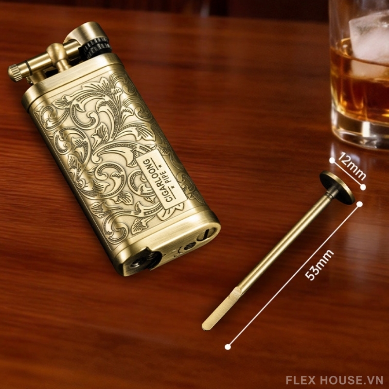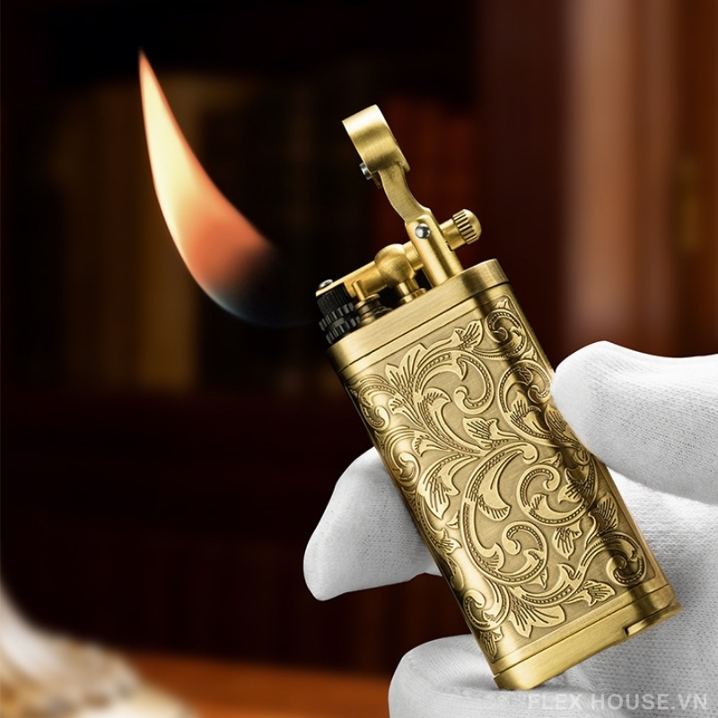- Bật lửa phong cách cổ điển: Thiết kế kim loại chạm khắc, ngọn lửa mạnh và tập trung, phù hợp châm xì gà ổn định (Lưu ý: vận chuyển không kèm gas)