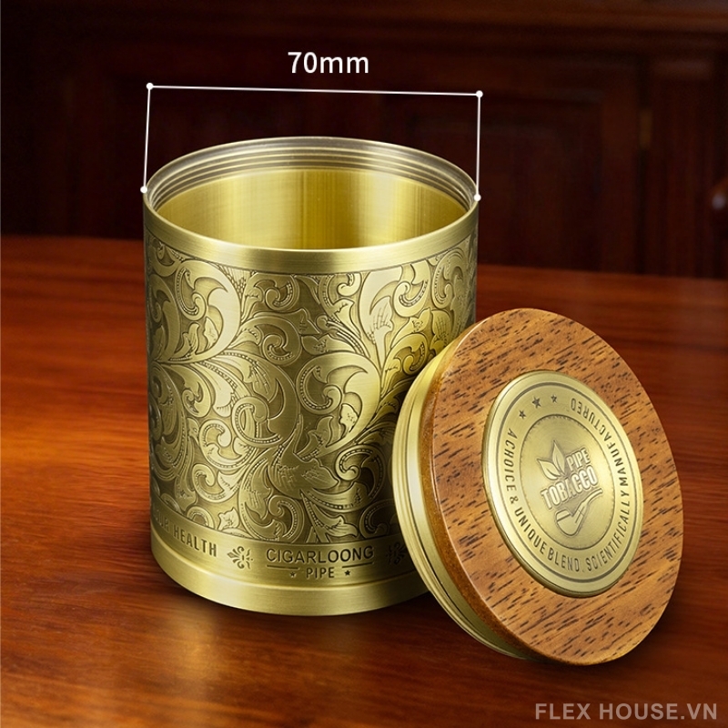 - Hộp đựng xì gà/tobacco kim loại: Nắp gỗ kết hợp thân kim loại kín khít, hỗ trợ bảo quản tốt hơn. Tích hợp bộ phận giữ ẩm bên trong
