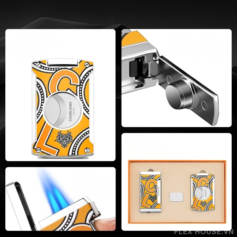 - Phần thân bật lửa được tích hợp đục cigar ẩn, giúp người dùng dễ dàng tạo lỗ cigar khi cần
