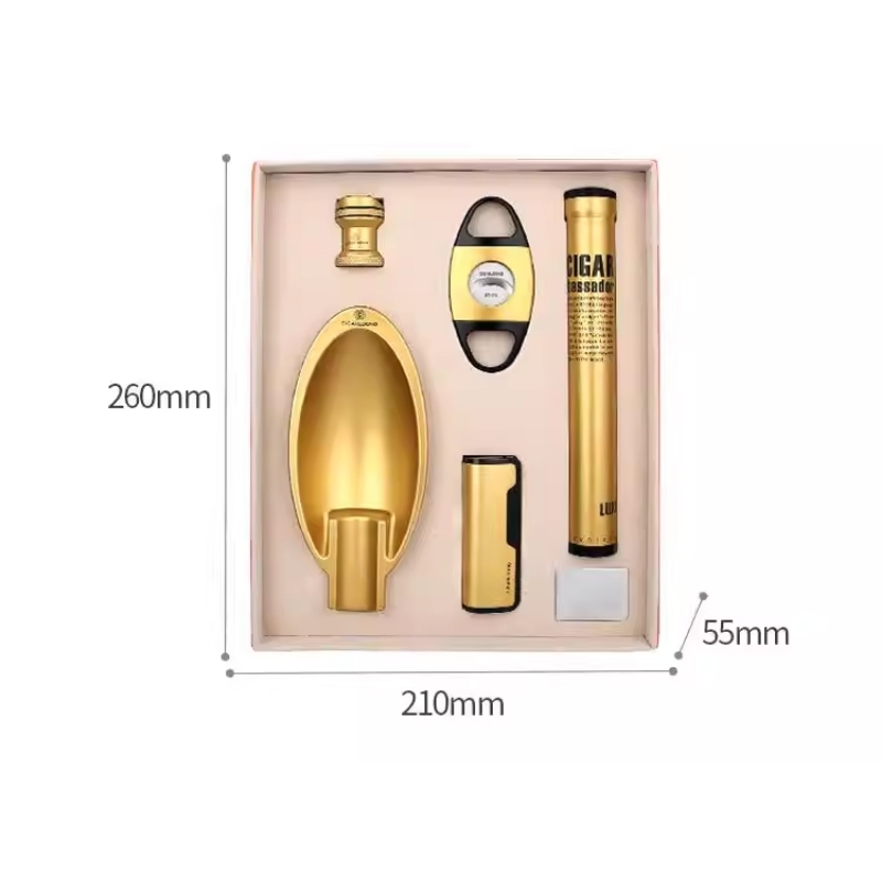 Bộ phụ kiện xì gà 5 món tiện dụng CGL3623 là bộ dụng cụ hoàn chỉnh dành cho người yêu cigar, giúp quá trình thưởng thức xì gà trở nên tiện lợi, chuyên nghiệp và đẳng cấp hơn. Bộ sản phẩm được thiết kế đồng bộ với tông màu vàng sang trọng, mang phong cách hiện đại và tinh tế, phù hợp sử dụng cá nhân hoặc làm quà tặng cho người đam mê cigar.
