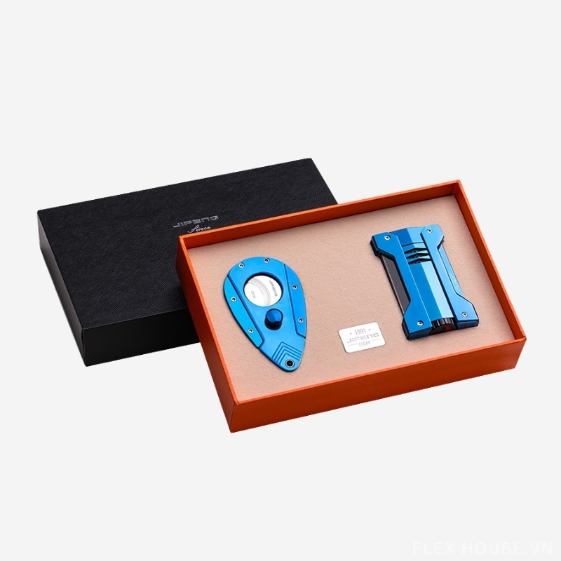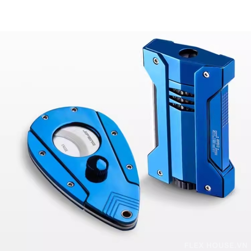 Bộ sản phẩm gồm bật lửa khò mạnh mẽ và dao cắt xì gà sắc bén, đáp ứng đầy đủ nhu cầu cơ bản của người chơi cigar. Với phong cách nổi bật và hiệu năng ổn định, đây là lựa chọn lý tưởng cho cả sử dụng cá nhân lẫn làm quà tặng sang trọng.
