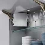 Sản phẩm hoạt động với điện áp đầu vào 100–240V AC/50–60Hz/1,3A, điện áp danh định 24V DC/2,5A, đồng thời có đầu ra 24V DC/1,2A để kết nối với hệ thống đèn trong khoang tủ. Với công suất tiêu thụ chỉ 1W ở chế độ nghỉ, bộ tay nâng tiết kiệm năng lượng, hỗ trợ điều khiển qua tần số vô tuyến 2,4 GHz, đạt chuẩn an toàn cấp II. Thiết kế hỗ trợ cánh tủ rộng dưới 1.200 mm (lớn hơn cần dùng 2 bộ), góc mở 107° và có thể giới hạn xuống 90° bằng phụ kiện chặn. Ngoài ra, bộ tay nâng cánh tủ bếp cho phép điều chỉnh mặt trước cánh tủ ±1,5 mm về chiều cao, cạnh và góc nghiêng, đáp ứng yêu cầu lắp đặt chính xác. Sản phẩm có lớp phủ mạ nikel cao cấp, nắp đậy màu trắng hoặc xám anthracite, mang đến sự tinh tế và hiện đại cho không gian bếp.