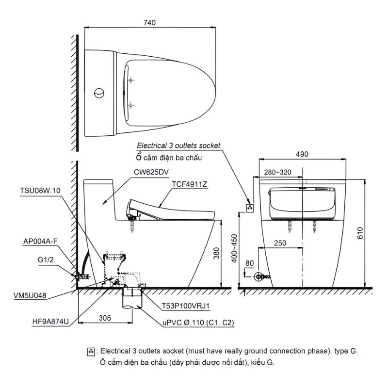 Bồn cầu 1 khối điện tử nắp rửa thông minh TOTO MS625DW11 49,759,000 ₫ Giá gốc là: 49,759,000 ₫.44,783,000 ₫Giá hiện tại là: 44,783,000 ₫.