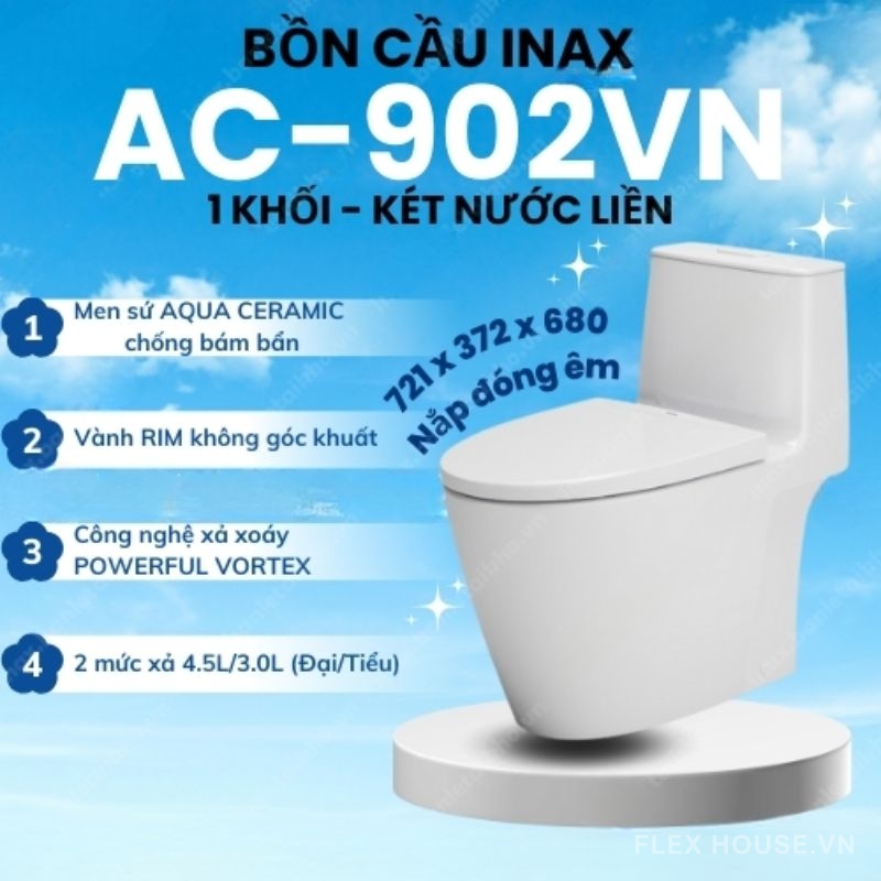 Giới thiệu Bồn cầu 1 khối nắp đóng êm Inax AC-902VN