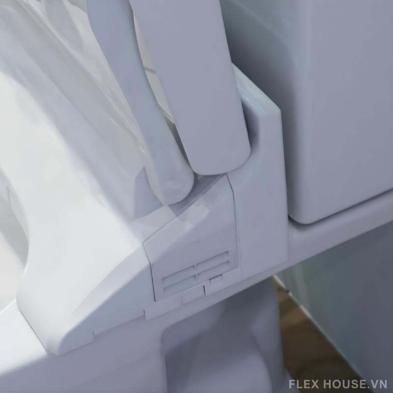 - Thiết kế bồn cầu thân dài, vành kín hiện đại, thuận tiện cho việc vệ sinh hằng ngày
