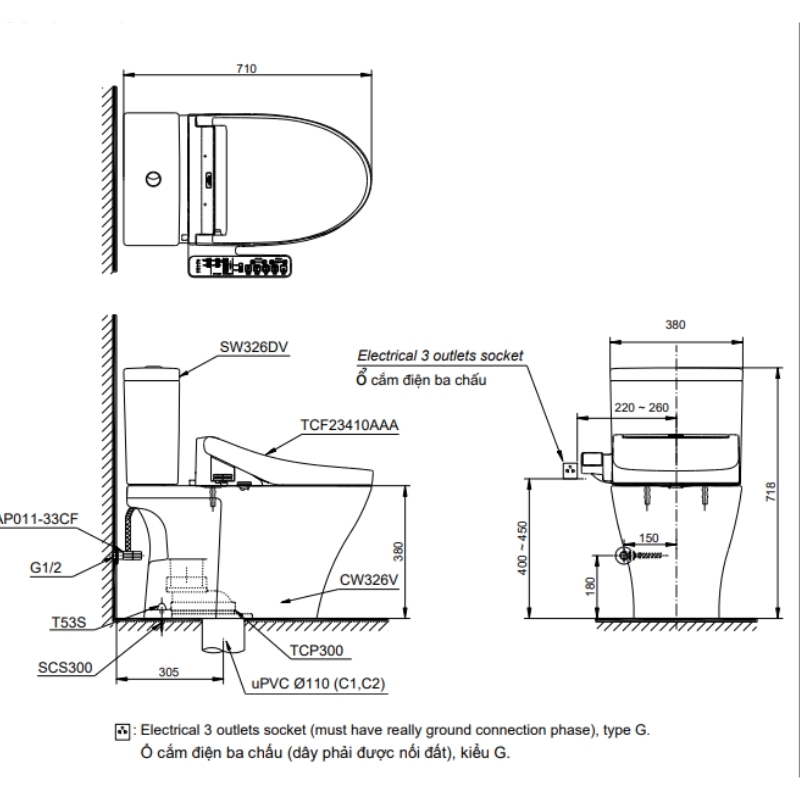 Giới thiệu Bồn cầu 2 khối nắp điện tử vành kín TOTO CS326DW16