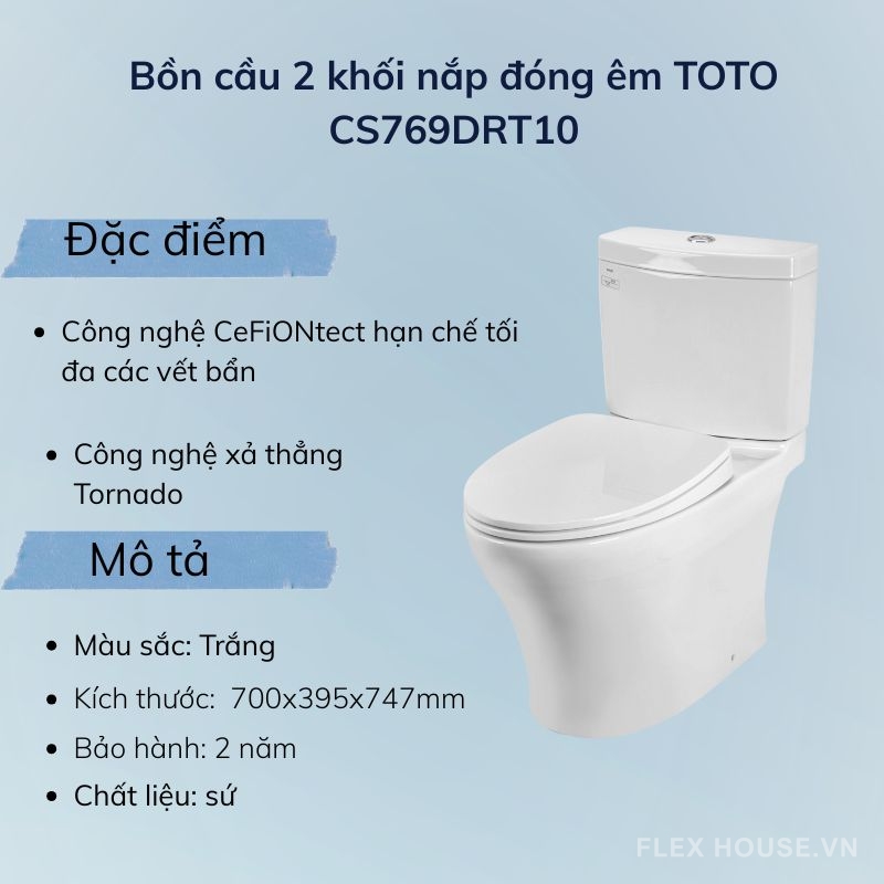 Giới thiệu Bồn cầu 2 khối nắp đóng êm TOTO CS769DRT10