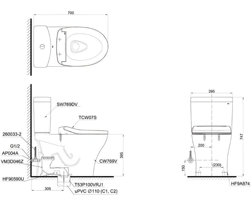 - Nắp đóng êm kèm vòi rửa nước lạnh TCW07S, hạn chế tiếng ồn, tránh sứt mẻ, tăng tuổi thọ sản phẩm