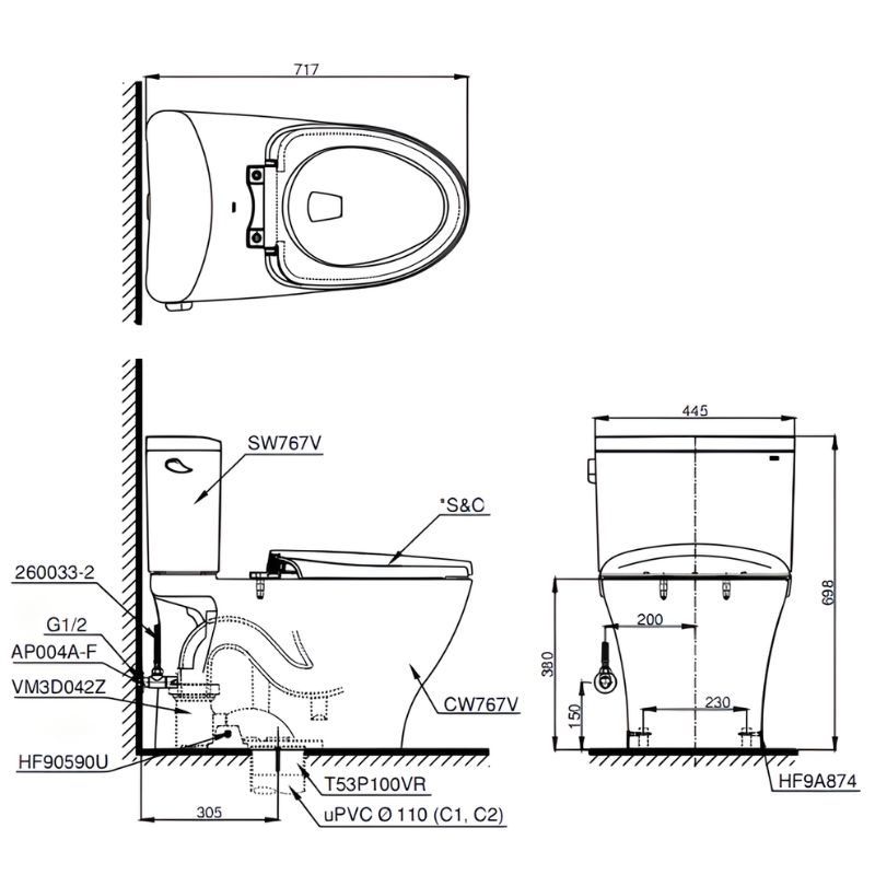 Đặt mua Bồn cầu 2 khối nắp gạt xả TOTO CS767RT8
