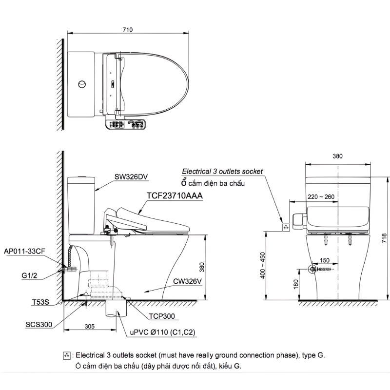 Đặt mua Bồn cầu 2 khối thân dài nắp rửa điện tử TOTO CS326DW18