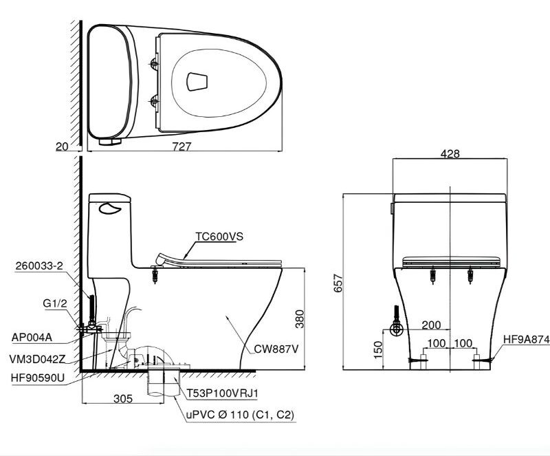 - Nắp đóng êm TC600VS, hạn chế tiếng ồn, tránh sứt mẻ, tăng tuổi thọ sản phẩm