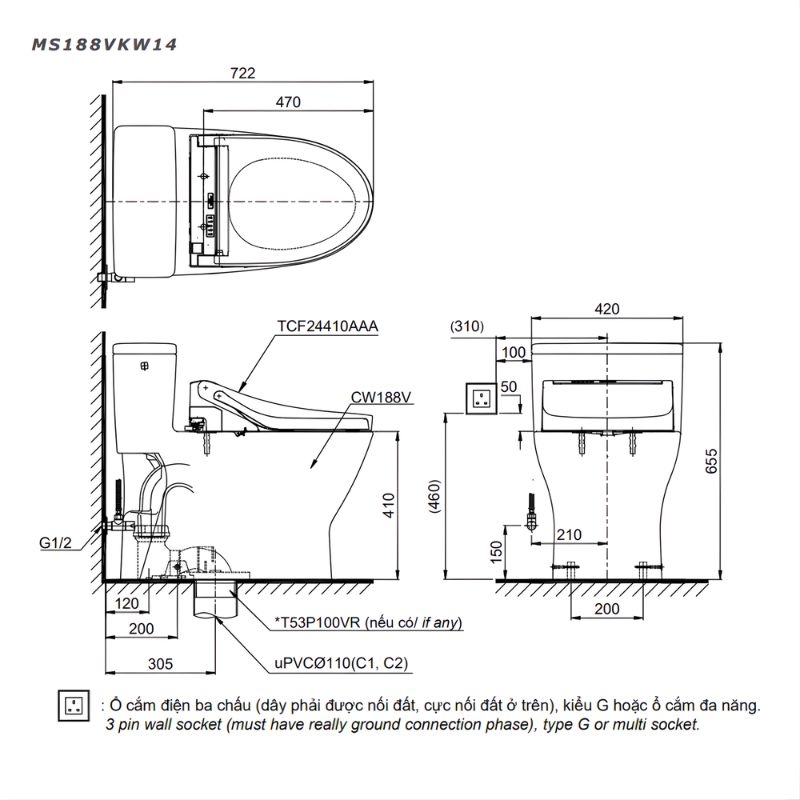 - Nắp đóng êm C5 TCF24410AAA, hạn chế tiếng ồn, tránh sứt mẻ, tăng tuổi thọ sản phẩm