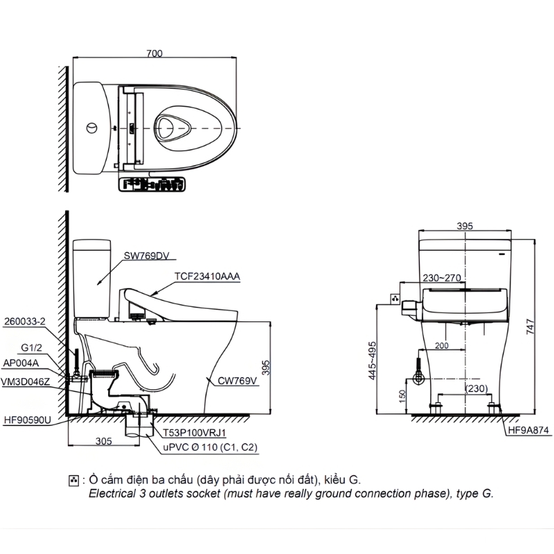 - Hệ thống xả TORNADO 3 cửa siêu mạnh, siêu êm, tiết kiệm nước 4.5/3L