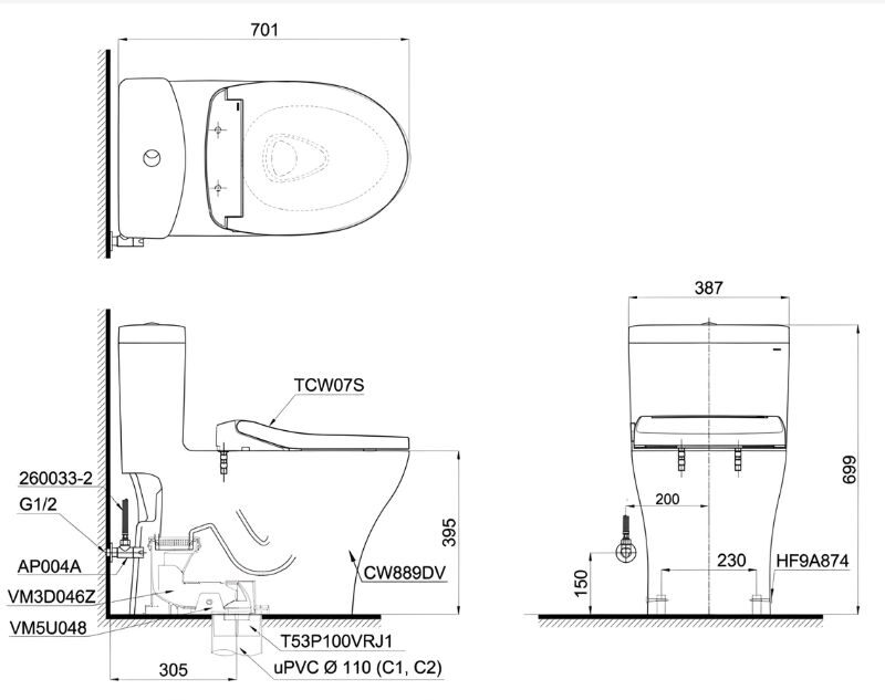 - Nắp rửa cơ TCW07S tích hợp chức năng rửa trước – rửa sau