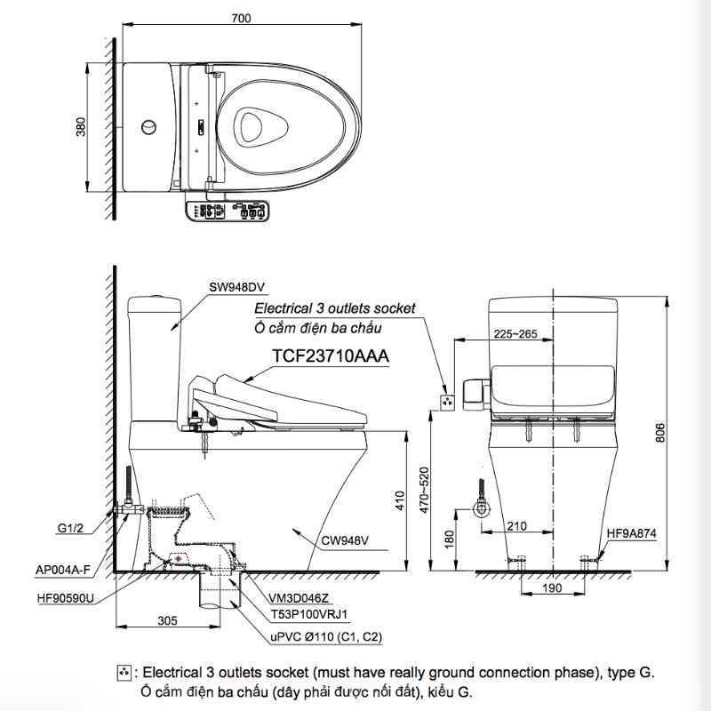 - Hệ thống xả TORNADO 3 cửa siêu mạnh, siêu êm, tiết kiệm nước 4.5/3L