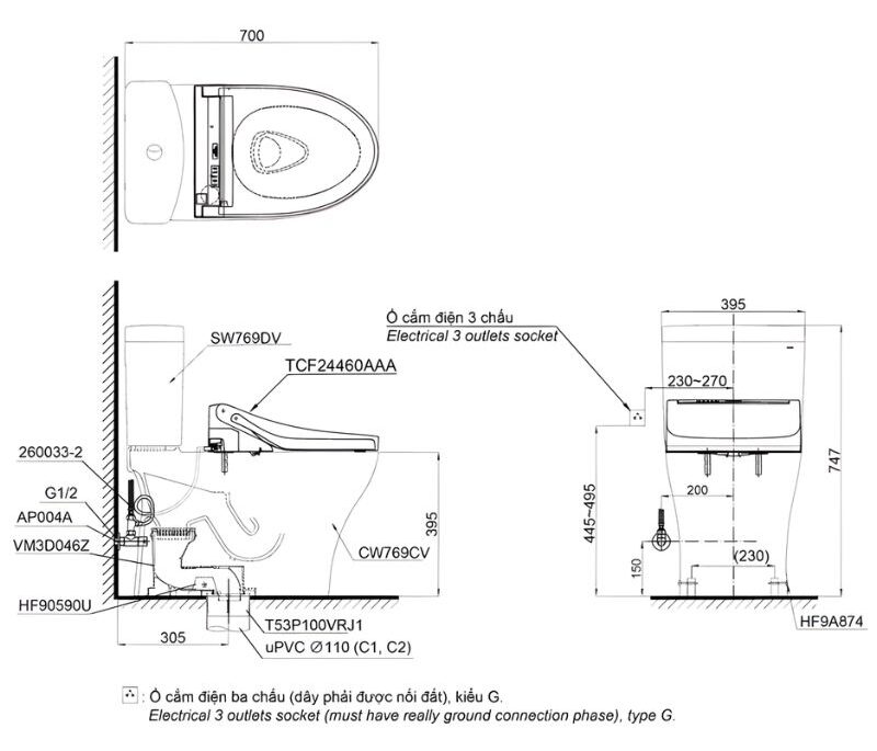 • Ổ cắm điện âm bàn