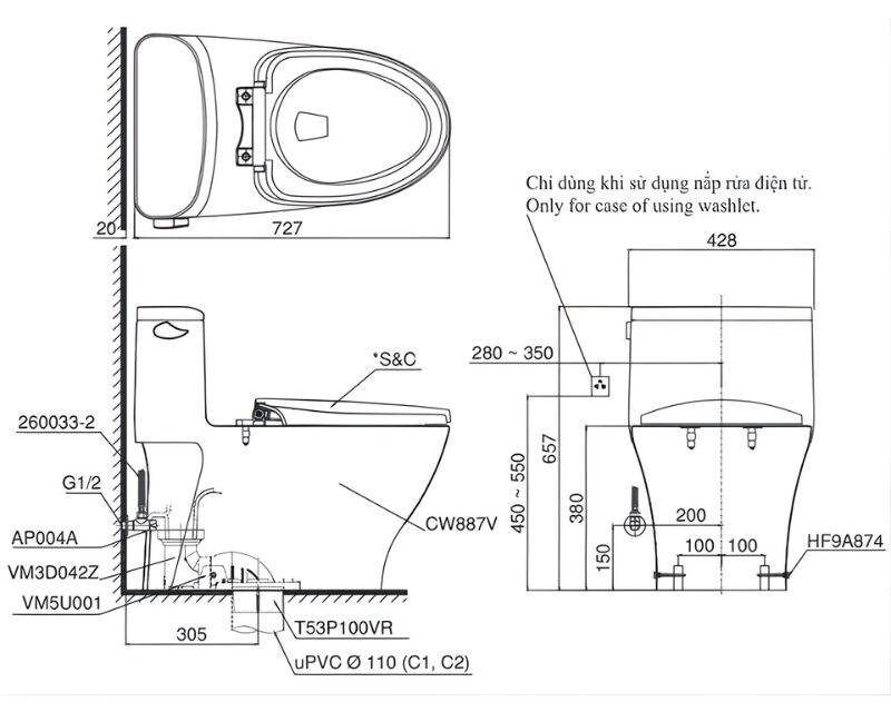 Giới thiệu Bồn cầu nắp rửa thông minh liền khối TOTO MS887RW14