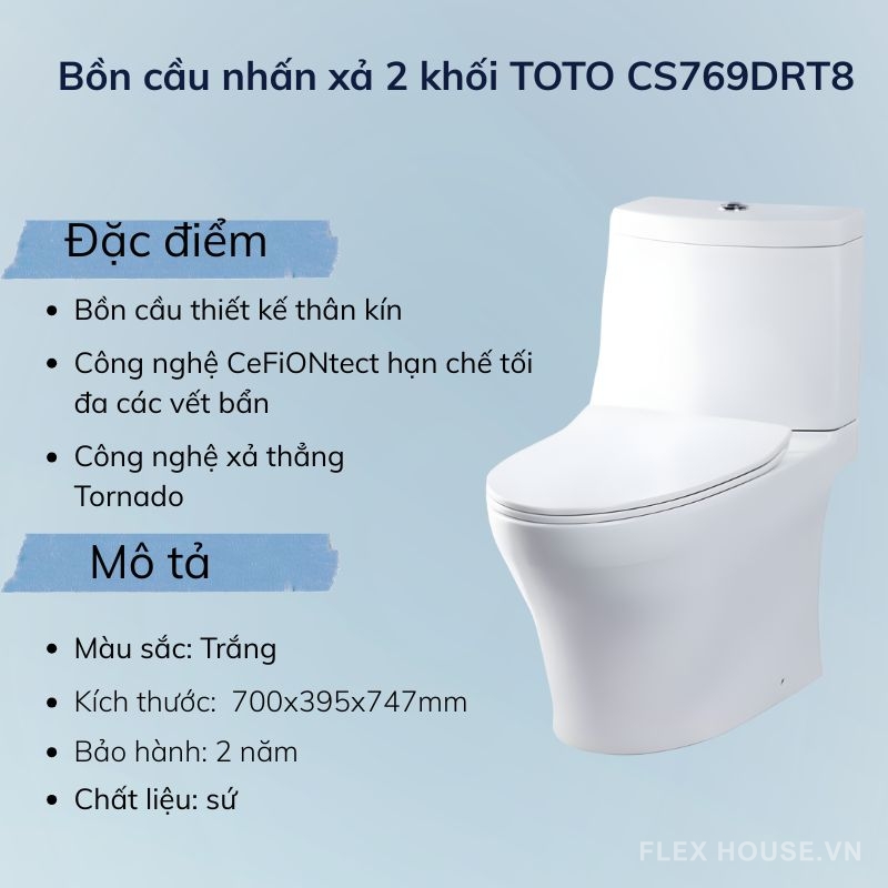 Bồn cầu nhấn xả 2 khối TOTO CS769DRT8 8,512,000 ₫ Giá gốc là: 8,512,000 ₫.7,661,000 ₫Giá hiện tại là: 7,661,000 ₫.