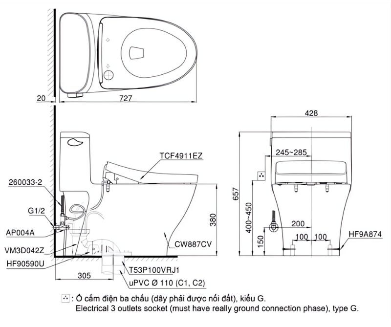 Bồn cầu thông minh giấu dây nắp điện tử TOTO MS887CRW12 45,763,000 ₫ Giá gốc là: 45,763,000 ₫.41,187,000 ₫Giá hiện tại là: 41,187,000 ₫.