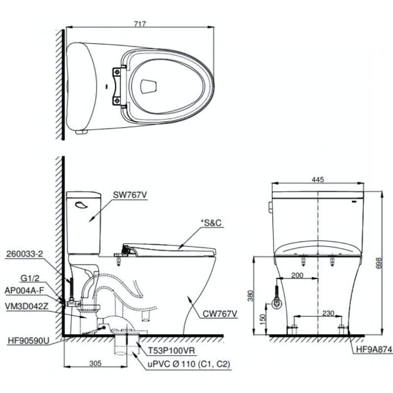 Bồn cầu vành kín nắp rửa điện tử giấu dây TOTO CS767CRW23 40,313,000 ₫ Giá gốc là: 40,313,000 ₫.36,281,000 ₫Giá hiện tại là: 36,281,000 ₫.