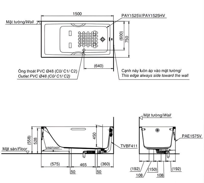 - Bộ xả nhấn kèm ống thải bồn tắm: TVBF411